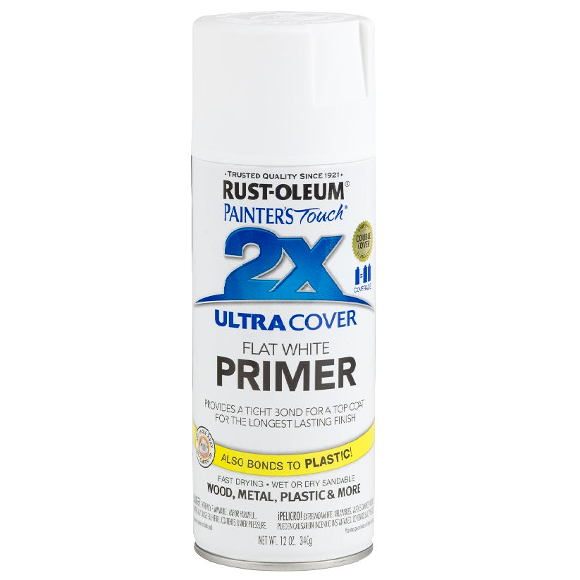 Rust-Oleum Painters Touch Primer promotes bond to top coat paints for durability and serve prevention from chipping, cracking and peeling. This ultra-cover primer can be used on wood, metal, plastic and more. This aerosol spray provide a sound base application for painters touch acrylic spray paint. It is possible to paint 10-12 square feet of area with one cane and its dry time is 20 minutes (to touch) which makes it economical.